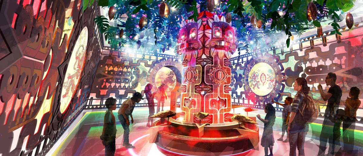 Clou du spectacle: une serre tropicale de 26 mètres de haut, aux formes de fèves de cacao, abritera des cacaoyers et retracera la culture des ingrédients du chocolat au lait. Plus loin, une galerie vitrée franchissant la Jogne offrira une vue directe sur les lignes de production en activité. Un bâtiment industriel désaffecté aux verrières restaurées deviendra un espace événementiel. Le parcours s'achève à l'Emporium, dédié aux dégustations, à la restauration et à l'observation des lignes de production.
