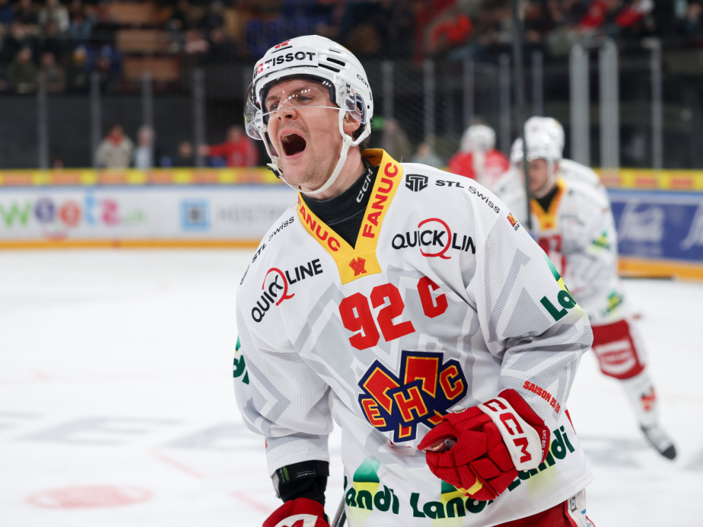 Gaëtan Haas et le HCB ont retrouvé le plaisir d'aller à la patinoire avec l'arrivée de Christian Dubé © KEYSTONE/CHRISTIAN MERZ